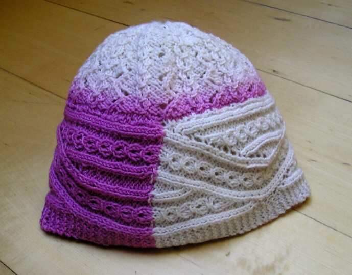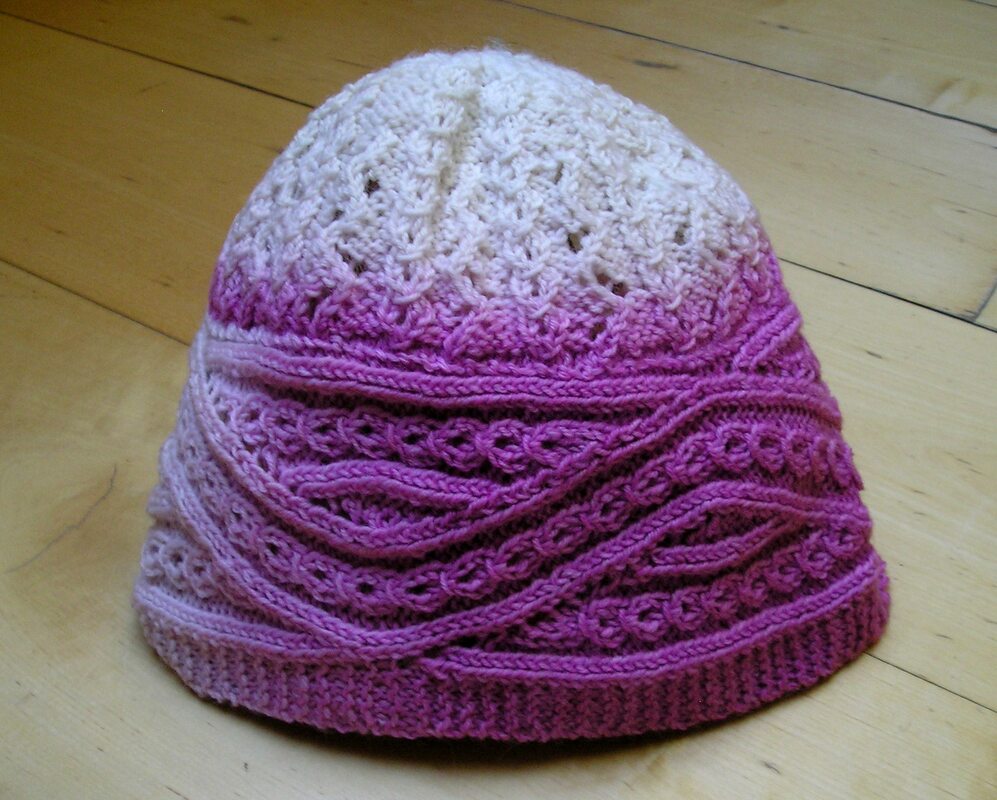 Anleitung zum Stricken einer Mütze "Schneewittchen" mit Lochmuster aus 4-fädiger Sockenwolle
