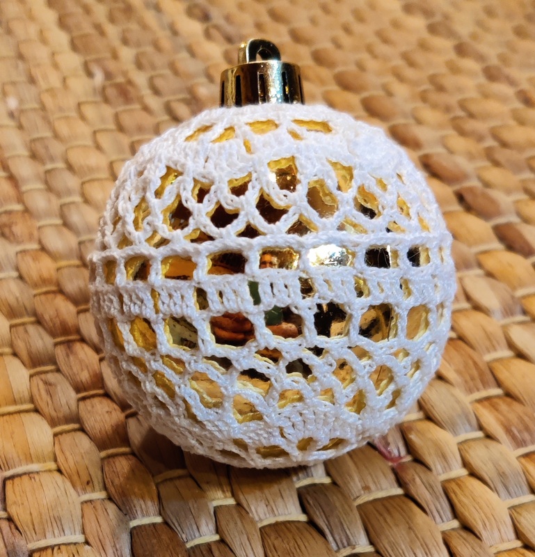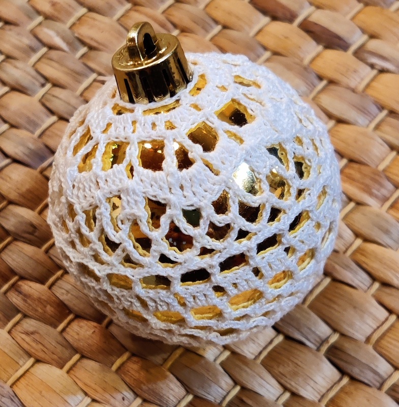 Eine tolle Art eure Christbaumkugeln mit einem Filetmuster zu verschönern.