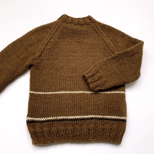 Dieser Kinderpullover wird von unten nach oben gestrickt. Bei der Fertigstellung des Pullovers brauchst du nur am Schluss die unteren Ärmelnähte zusammennähen. Ansonsten wird alles zusammen gestrickt.