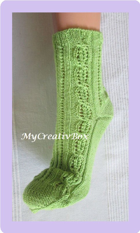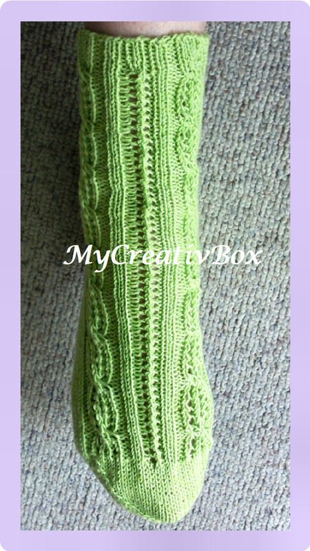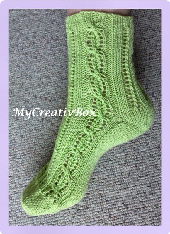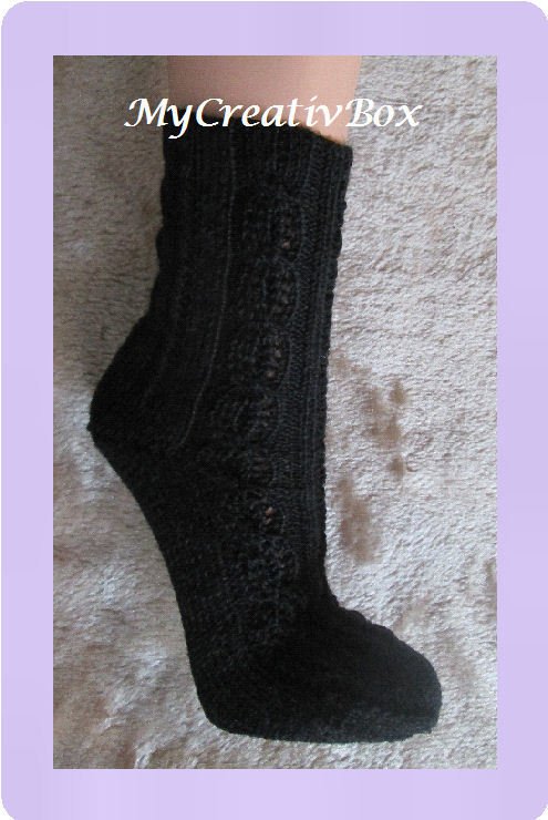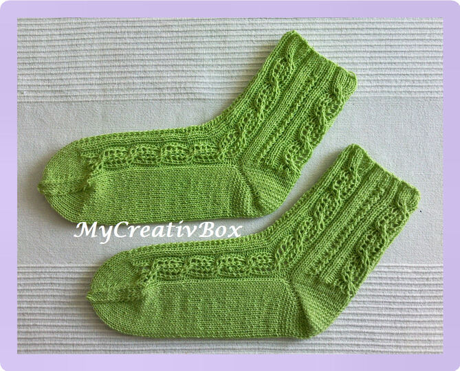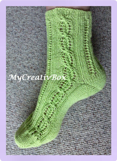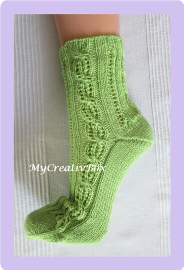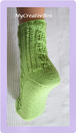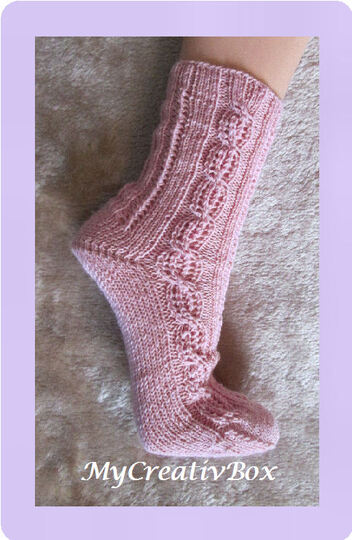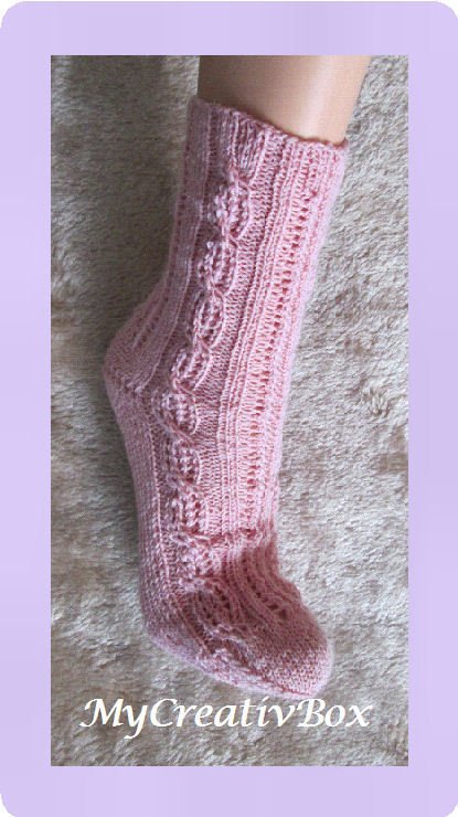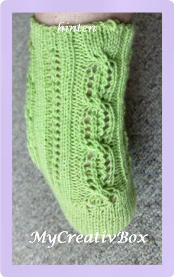 In der Anleitung werden Ferse und Spitze nicht näher erläutert; diese werden in gewohnter Arbeitsweise gestrickt.