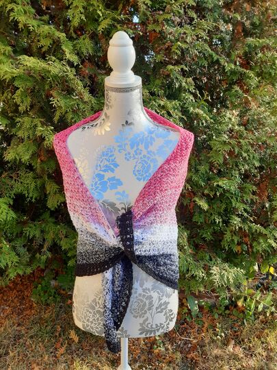 ob als elegantes Schultertuch oder als wärmendes Dreieckstuch an kalten Tagen, dafür eignet sich das Tuch sehr gut.