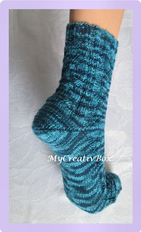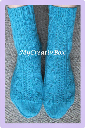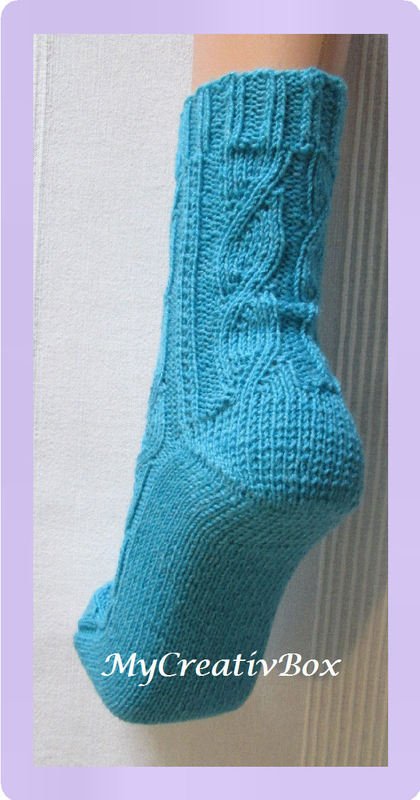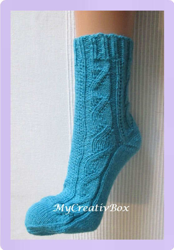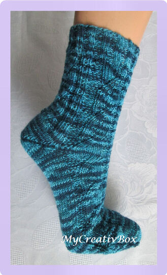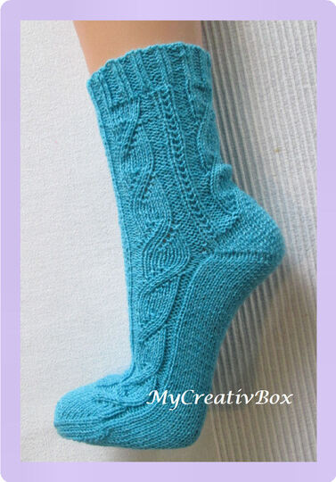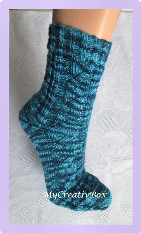 In der Anleitung werden Ferse und Spitze nicht näher erläutert; diese werden in gewohnter Arbeitsweise gestrickt.
