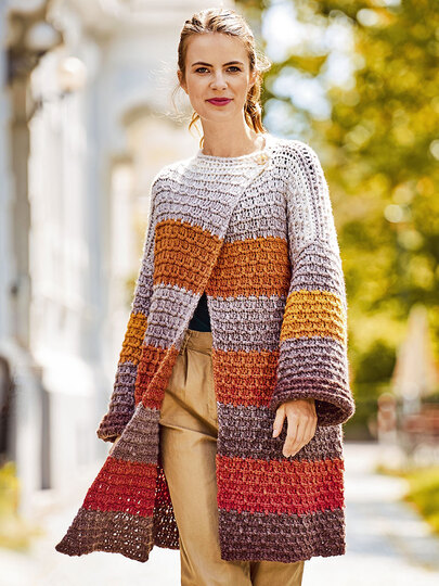 Ein superschicker Mantel aus der kuscheligen Woolly Hugs Cloude begleitet Euch durch die kalte Jahreszeit.