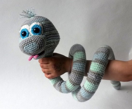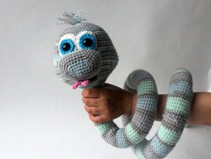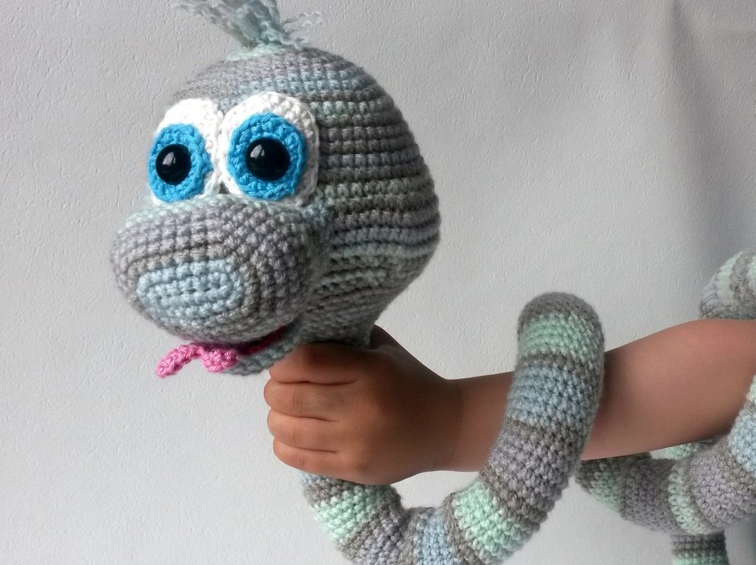 Mit dieser detailierten Häkelanleitung gelingt sie Dir im Nu - die Schlange Elsa.