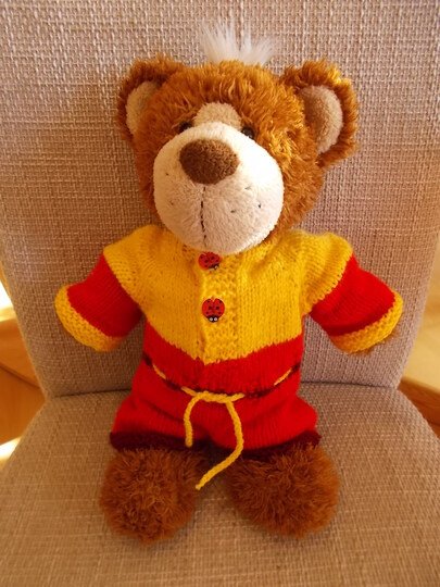 Der (rot-gelbe) Teddy-Overall hat hier folgende Maße: