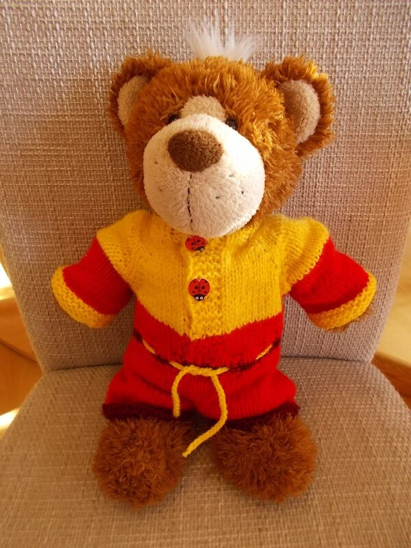 Die Hosenlänge und auch die Armlänge kann je nach Größe des Teddys oder der Puppe beliebig verändert werden. In der Anleitung gebe ich auch Hinweise für andere Maße.