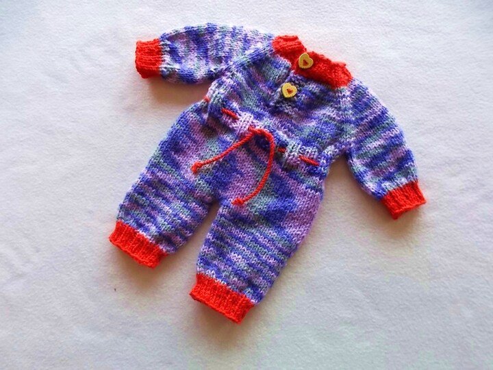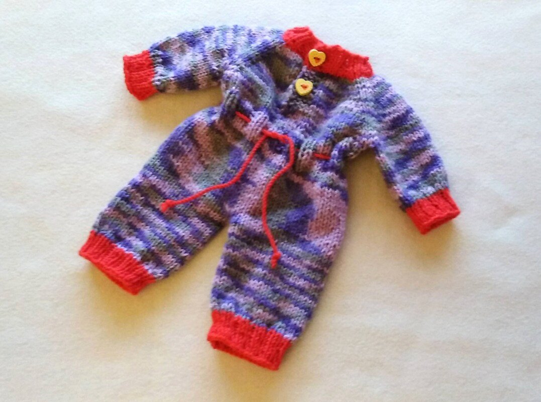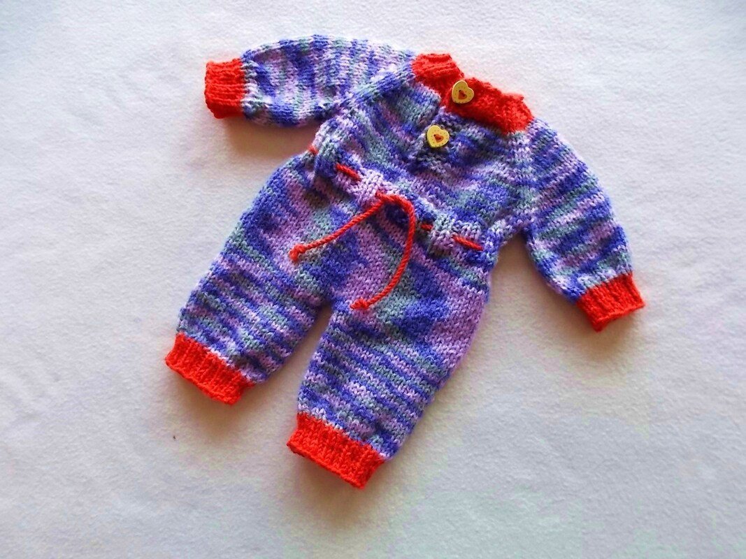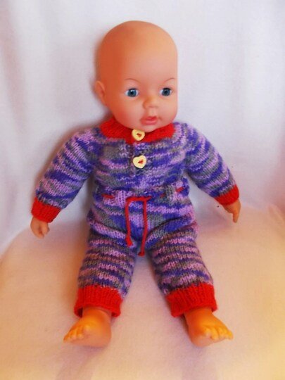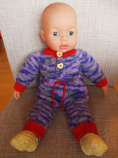 Der (lila melierte) Puppen-Overall hat hier folgende Maße: