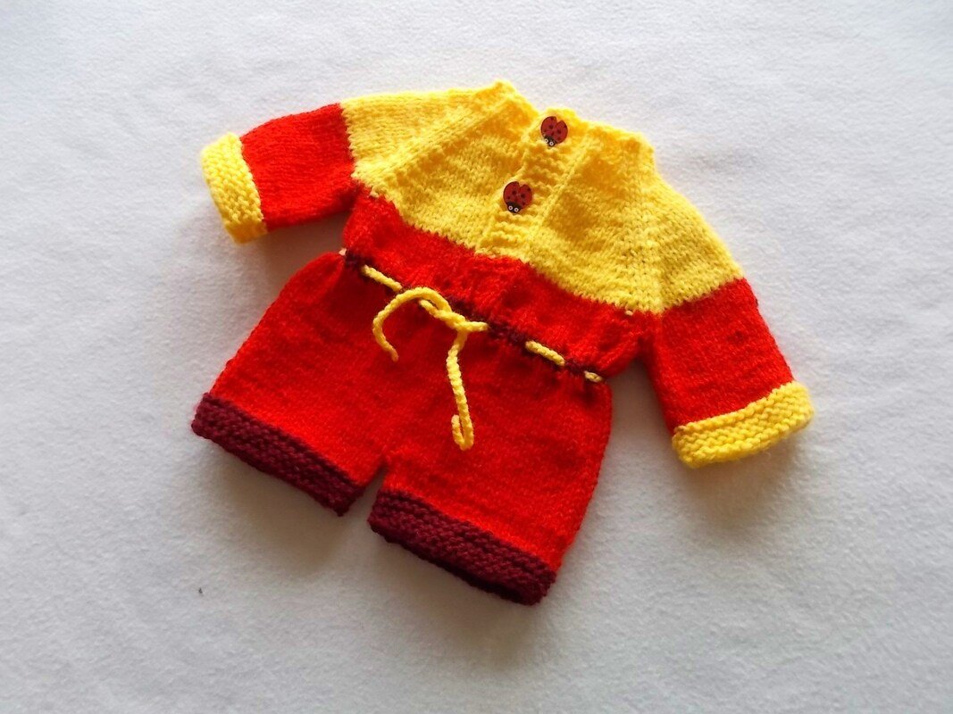Außerdem enthält die Anleitung varable Angaben für einen Teddy oder eine Puppe. Beide Anzüge lassen sich also genau nachstricken.