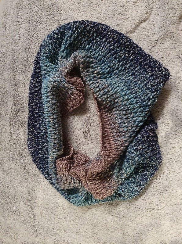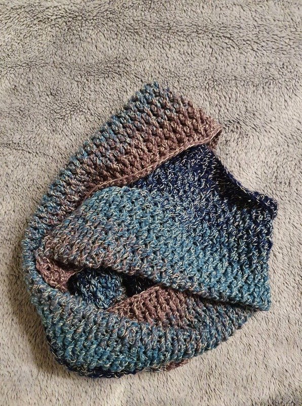 Für den Loop auf dem Titelbild habe ich etwa 600m 4-fach Modal-Garn verwendet.