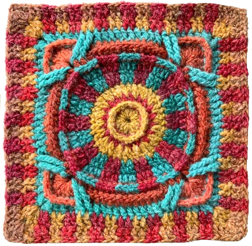 Mit dieser dicken Wolle und der Häkelnadel 4,5 hat das fertige Grannymuster Zirkuss bei 10 RUNDEN eine Seitenlänge von 37cm + wiegt 116 gr.