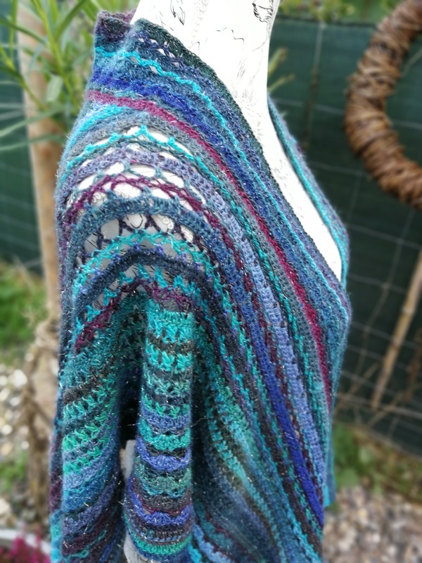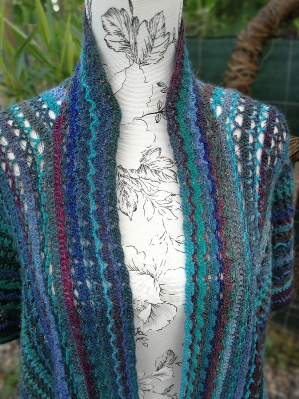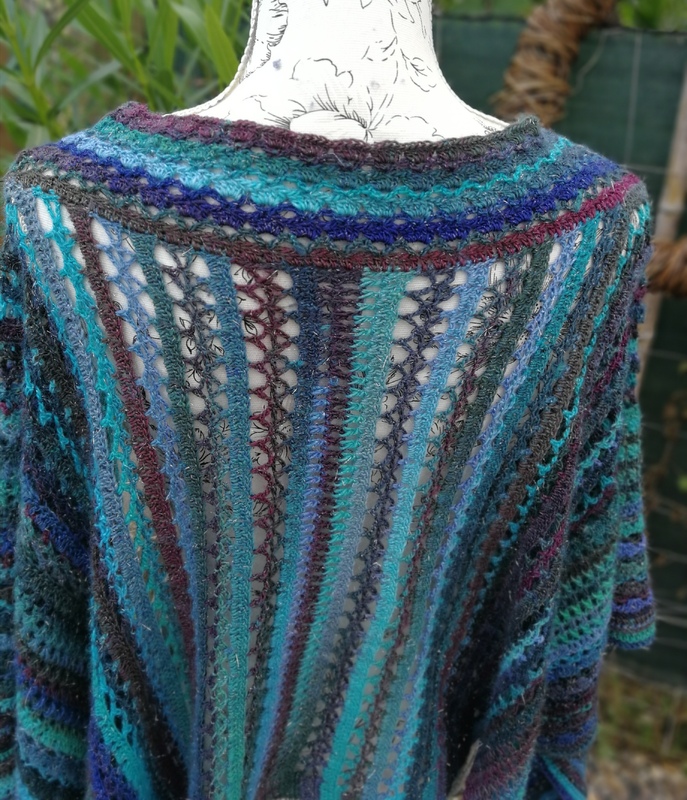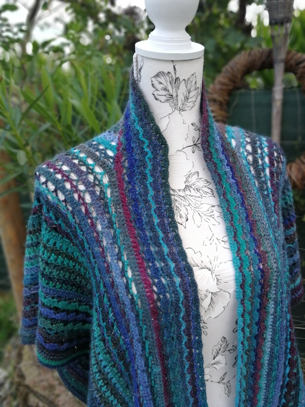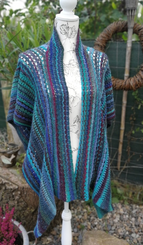 Die Anleitung für einen tollen und farbenfrohen Überwurf, der in einem Stück quer gehäkelt wird.