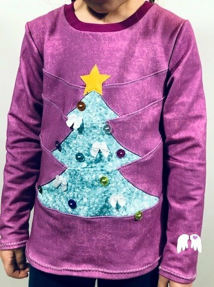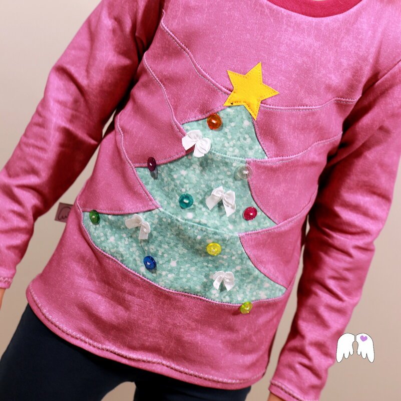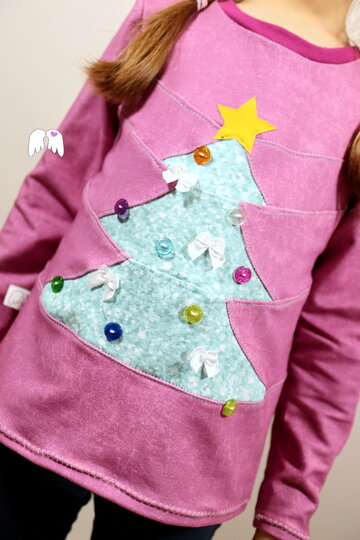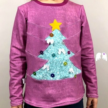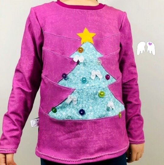 Ein Shirt / Pullover, lässig geschnitten mit einer Tannenbaum-Unterteilung. Ja, du hast richtig gelesen: das Shirt kannst du als Tannenbaum unterteilen – und kannst ihn danach sogar schmücken wie du magst =) . Ob mit Knöpfen, Bändern, Borten, Schleifchen oder Applikationen – zaubere dir deinen Traum-Tannenbaum aufs Shirt!