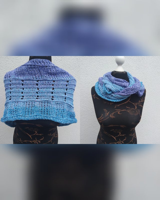 Für einen Loop mit den Maßen habe ich einen 4fädigen Bobbel, 1000m, mit Nadelstärke 3 verbraucht.
