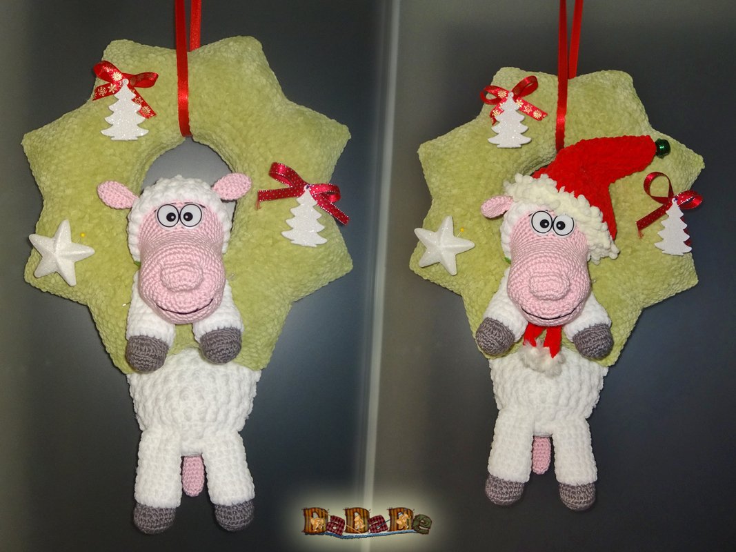 Sie kaufen hier die Anleitung für diesen tollen Kranz, sowie dem Schaf und der Weihnachts-Mütze,