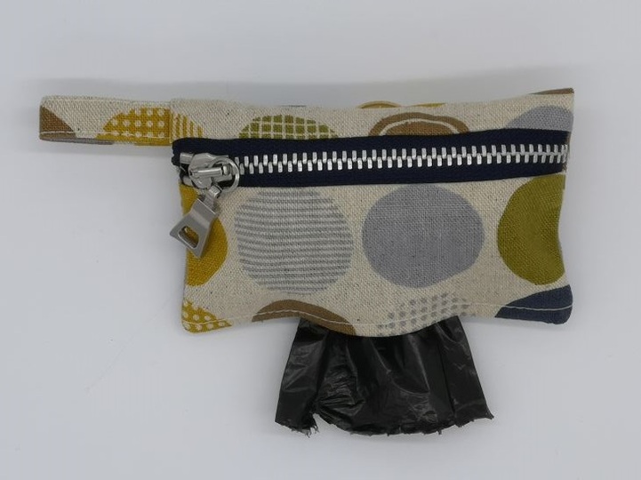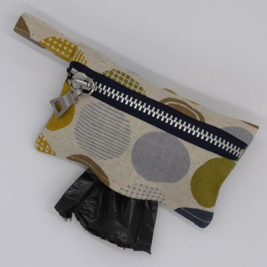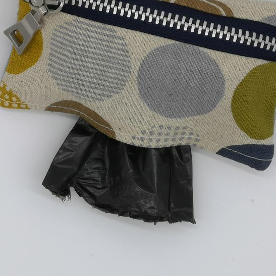 In das Hundekotbeuteltäschen passt eine Rolle Hundekotbeutel. Über eine Öffnung an der unteren Kante kann ein benötigter Beutel einfach herausgezogen und abgerissen werden.