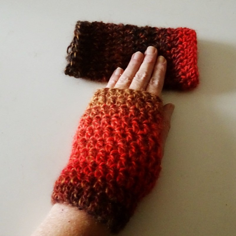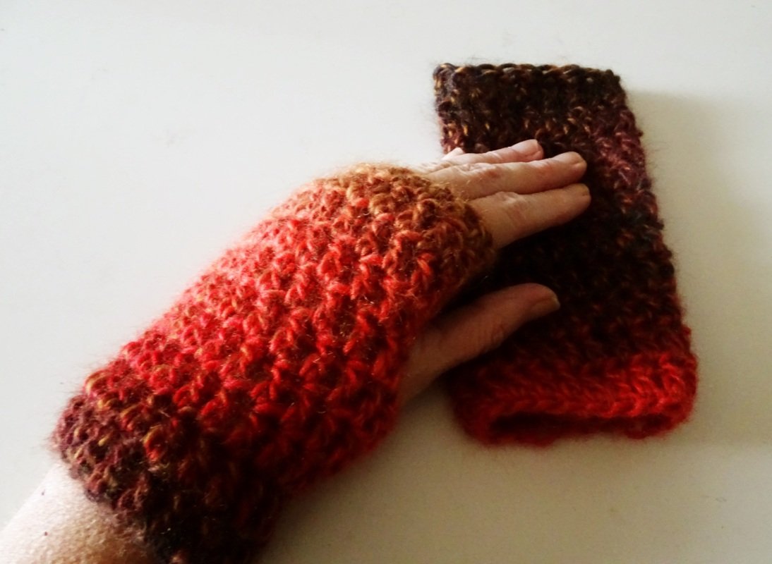 Wie wäre das, wenn du ein Paar Pulswärmer in 1 Stunde häkeln könntest? Ungefähr so lange habe ich für meine gebraucht.