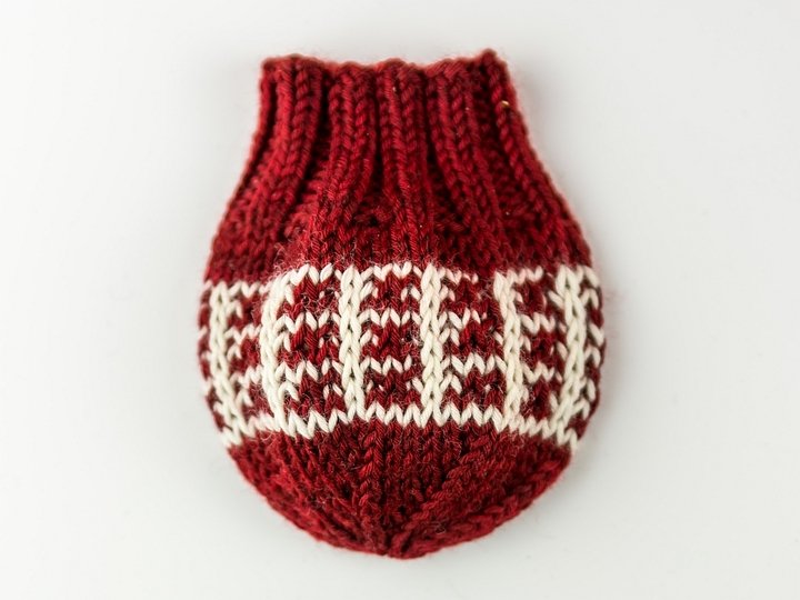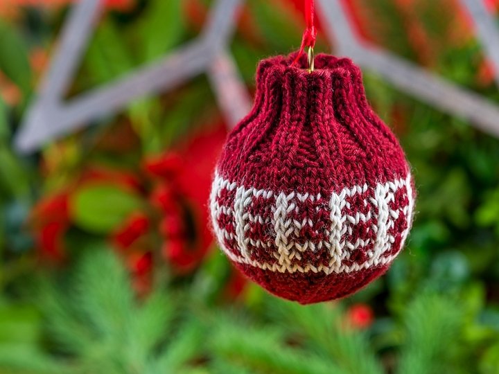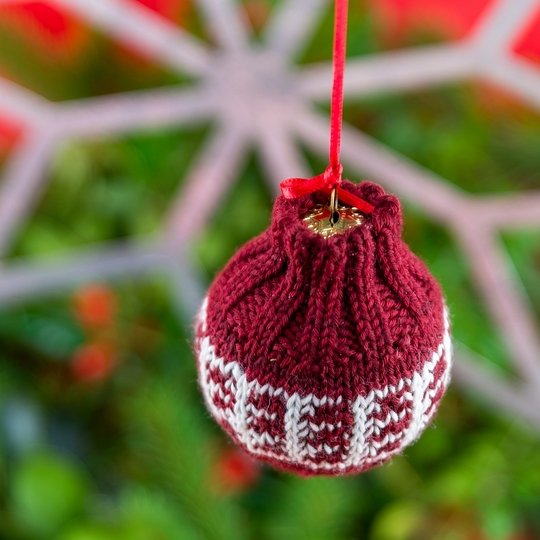 Schmückt euren Christbaum mit etwas ganz Besonderem: Kugeln mit einem selbstgestrickten Überzug. Dieser Überzug ist mit einem einfachen Hebemaschenmuster verziert.