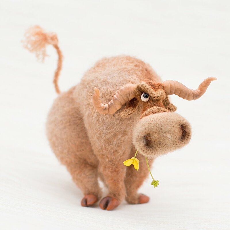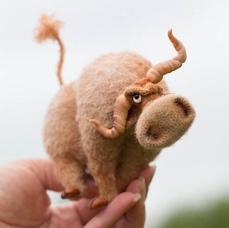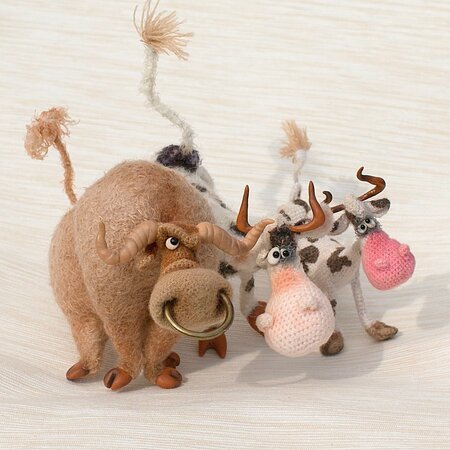 ✓ Zusätzliches Garn – bei mir “Lidia” Semenovskaya Garn (50% Wolle, 50% Acryl, 1613 m / 100 g): 2-fädig für das Mäulchen und die Hufe, ca. 10 g; 1-fädig für die Hörner, ca. 5 g. Sie können beliebiges glattes Garn verwenden: Acryl, Mikrofibra, Baumwolle