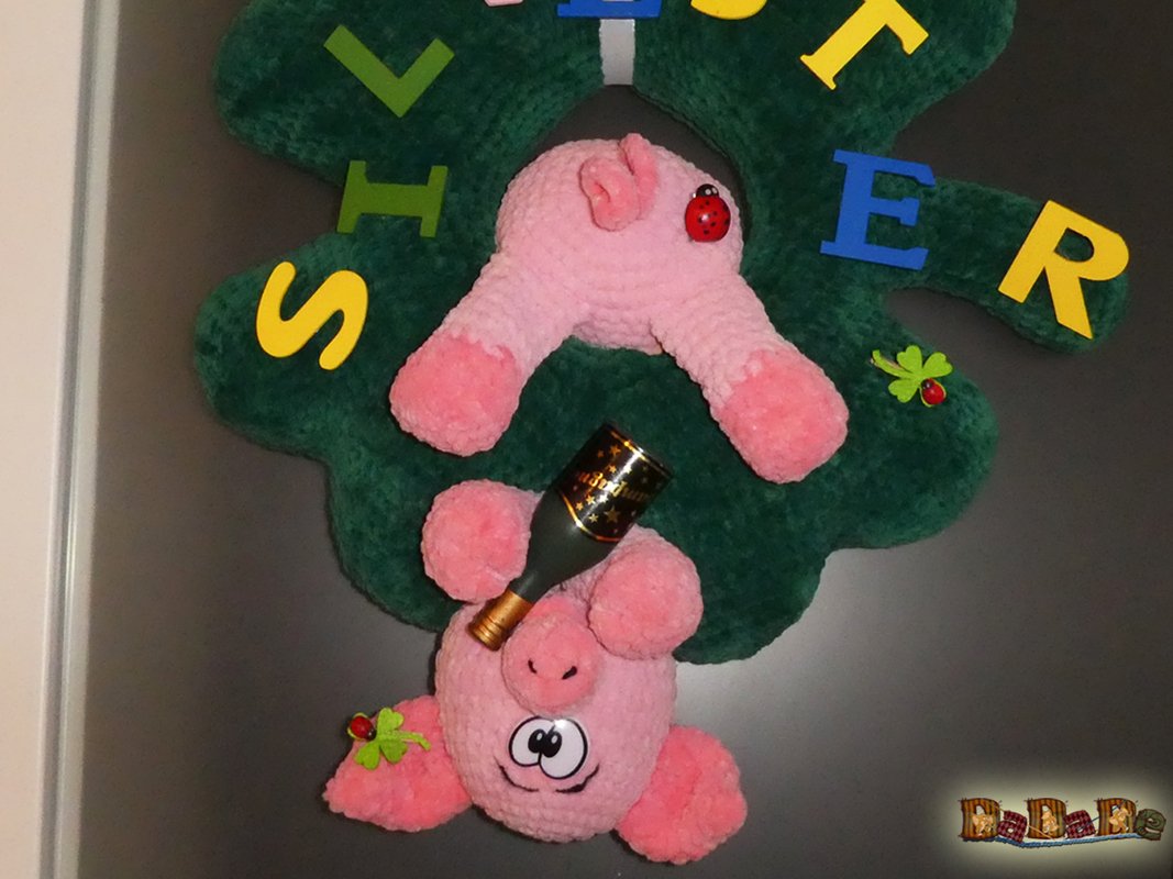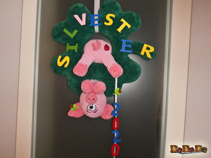 Das Schwein, als Türkranz, heißt jeden Gast herzlich willkommen, nicht nur an Silvester.