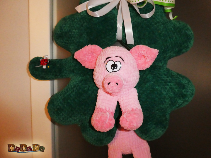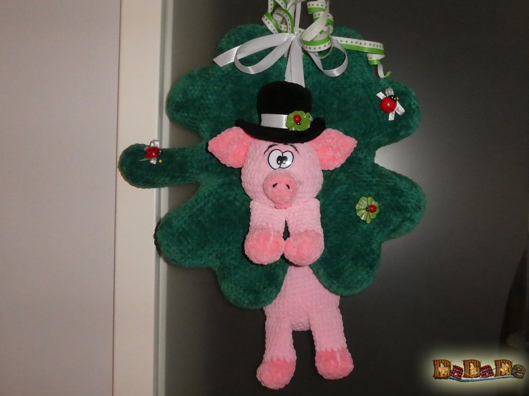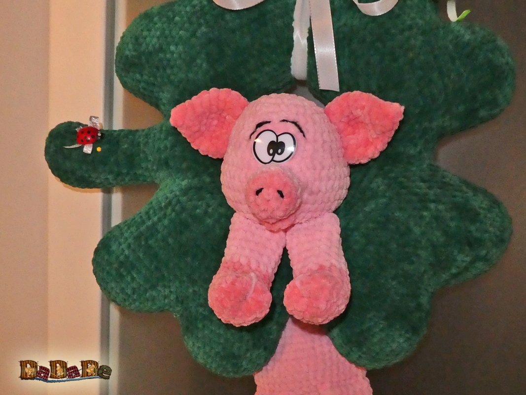 Das Schwein kann das ganze Jahr über als Türdekoration dienen.