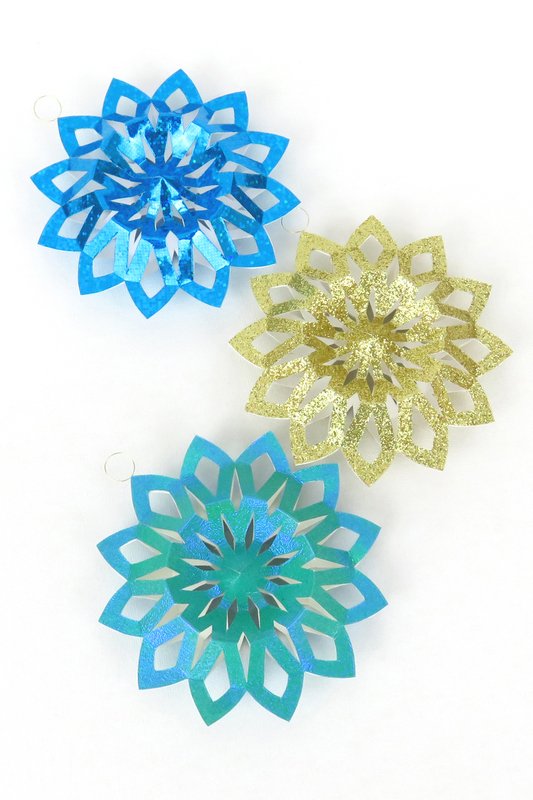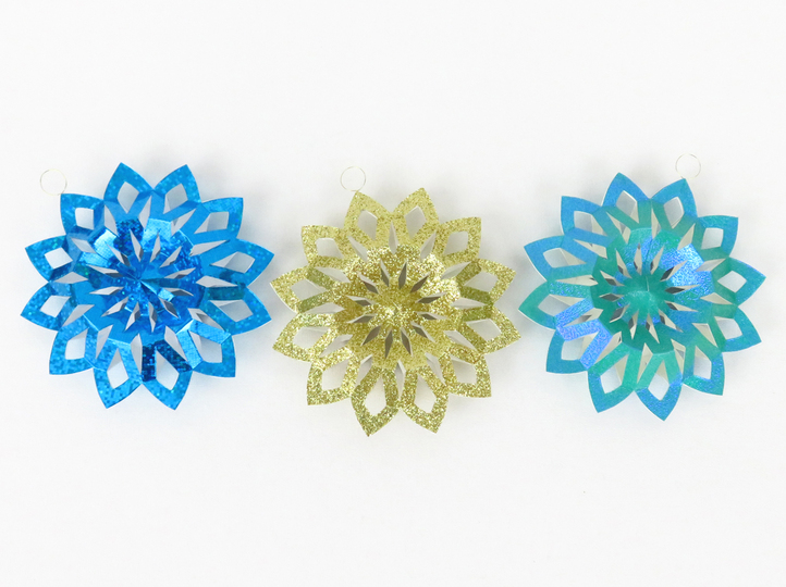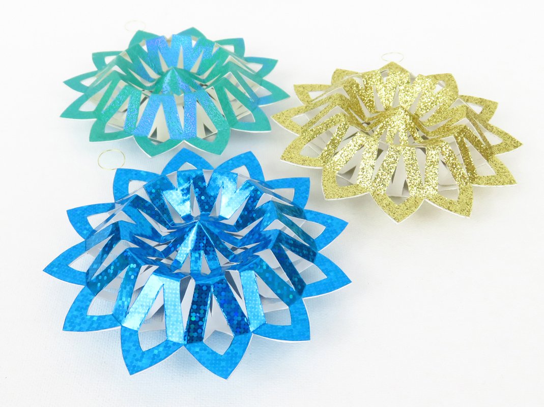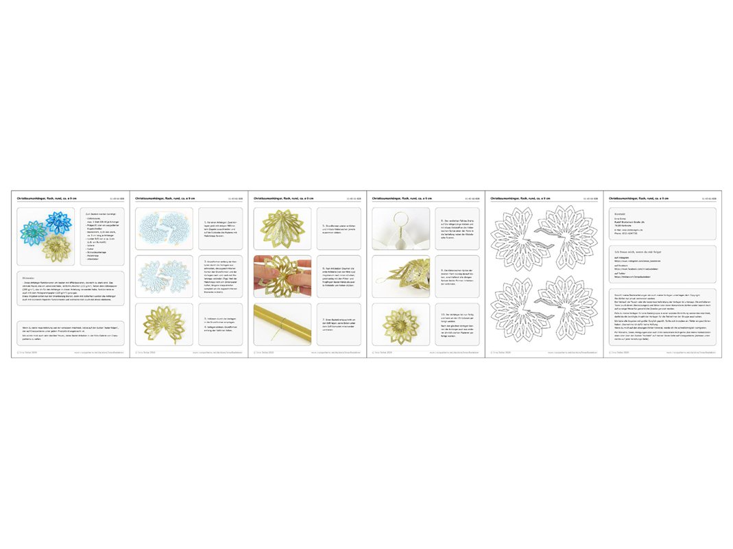 Diese hübschen Anhänger sind zwar für den Christbaum gedacht, können aber sicherlich auch anderweitig eingesetzt werden. Wenn du z. B. die Öse weglässt und in die zwei gegenüber liegende Spitzen kleine Löcher einstichst, kannst du die schönen Rosetten zu einer Kette verarbeiten.