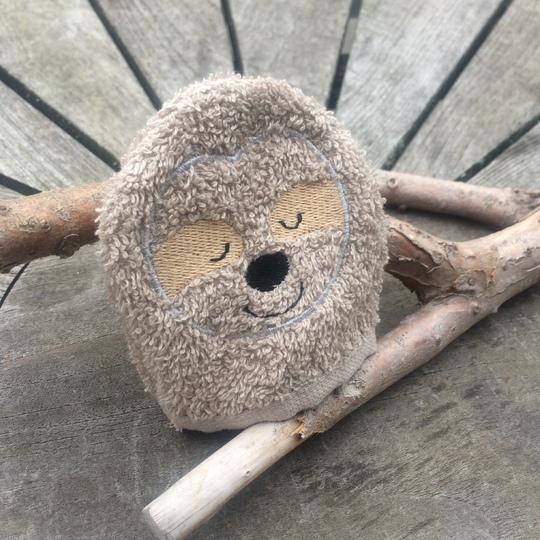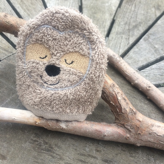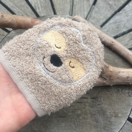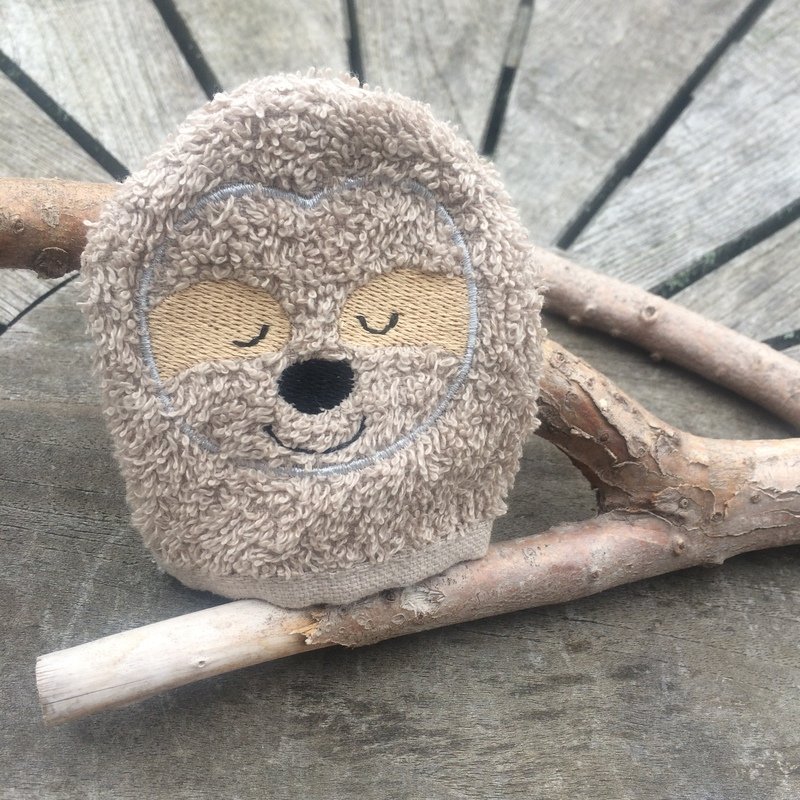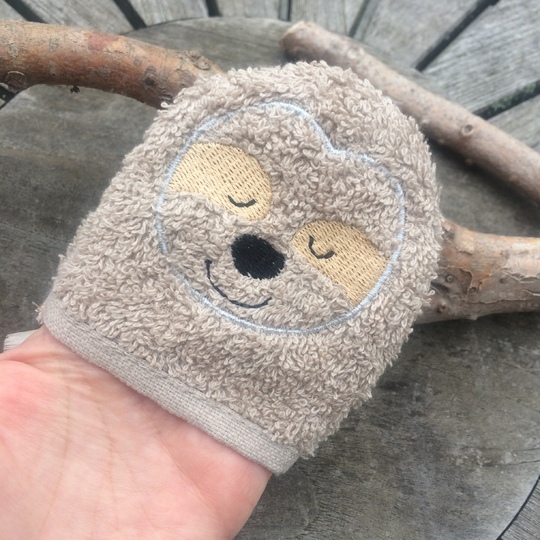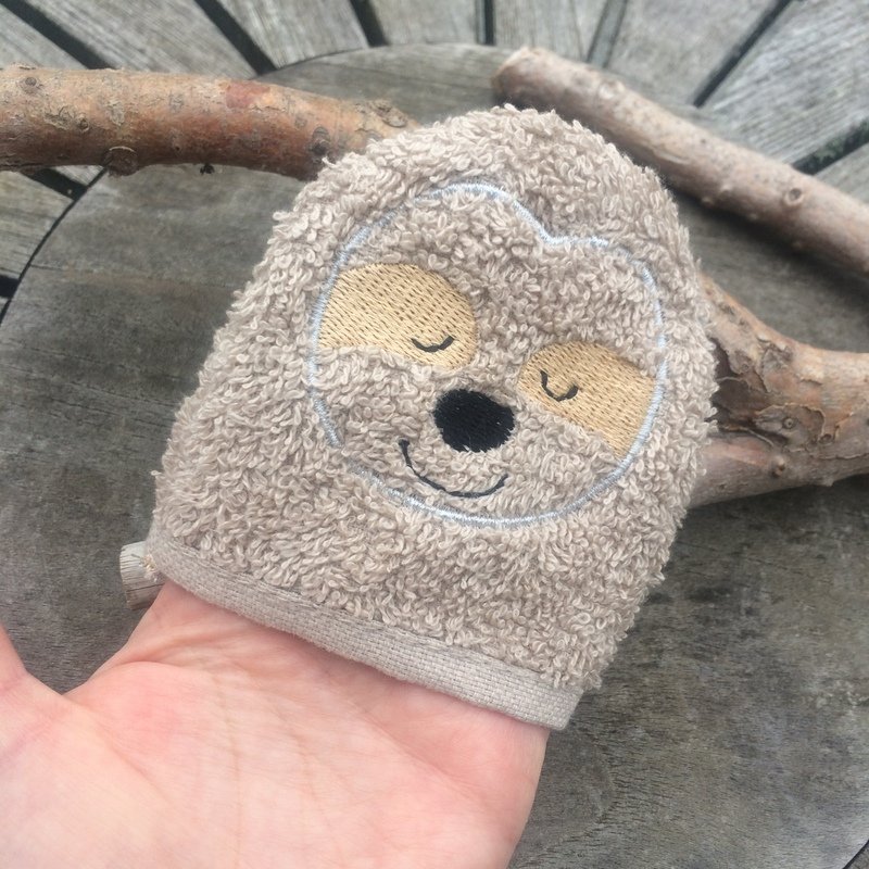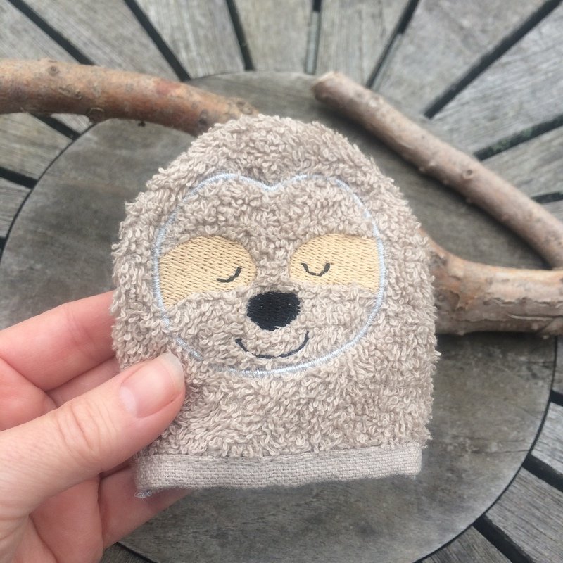 Der Waschlappen hat am Ende eine Breite von 9 cm und eine Länge von 9 cm.