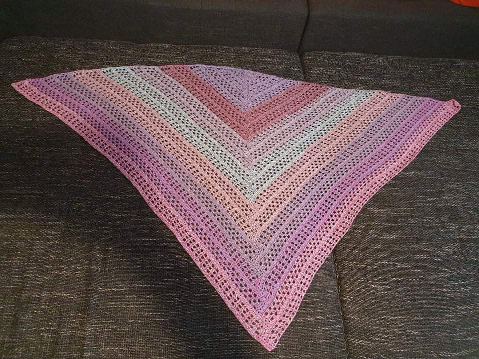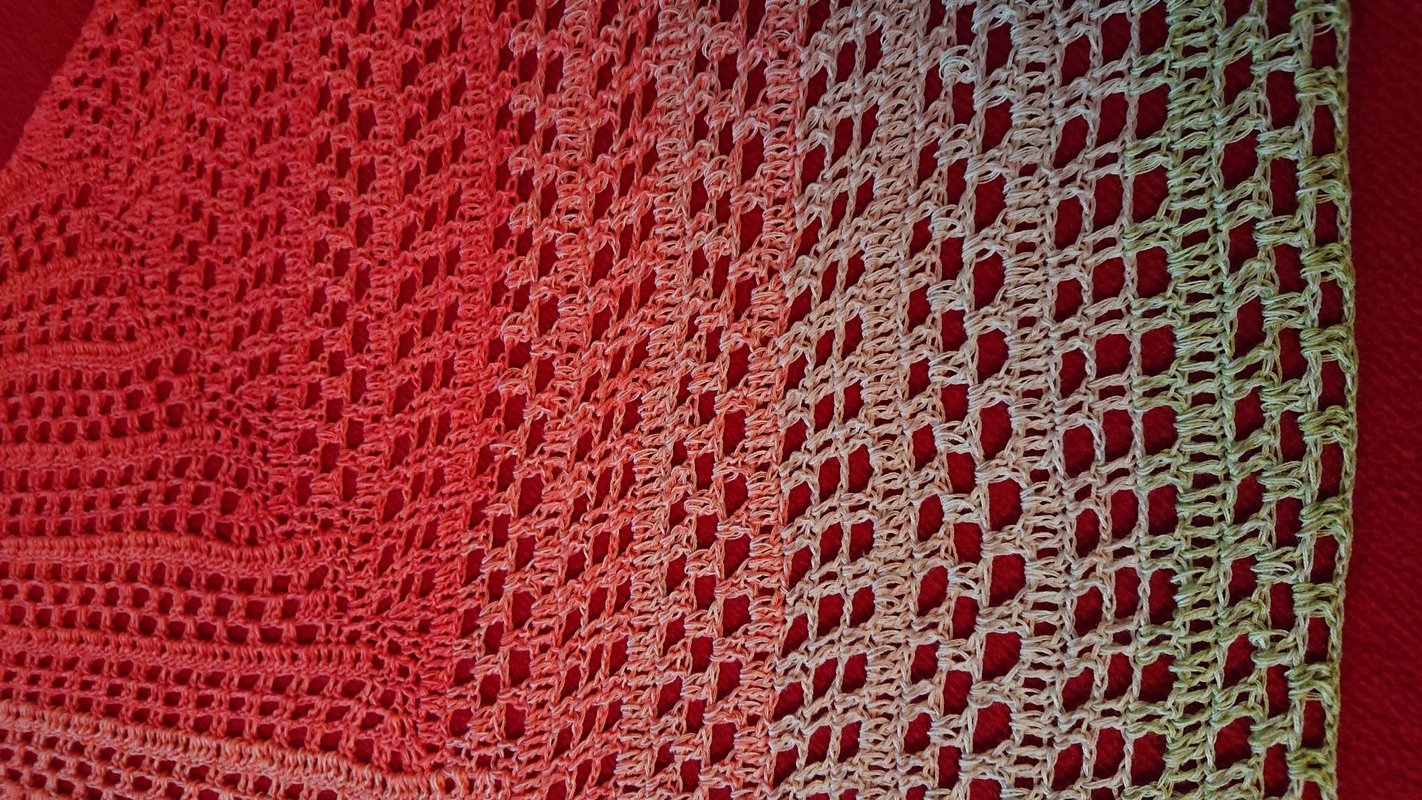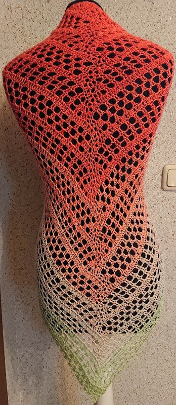 Die Anleitung zum Tuch besteht aus schriftlich ausformulierten Reihen und beinhaltet eine Häkelschrift.