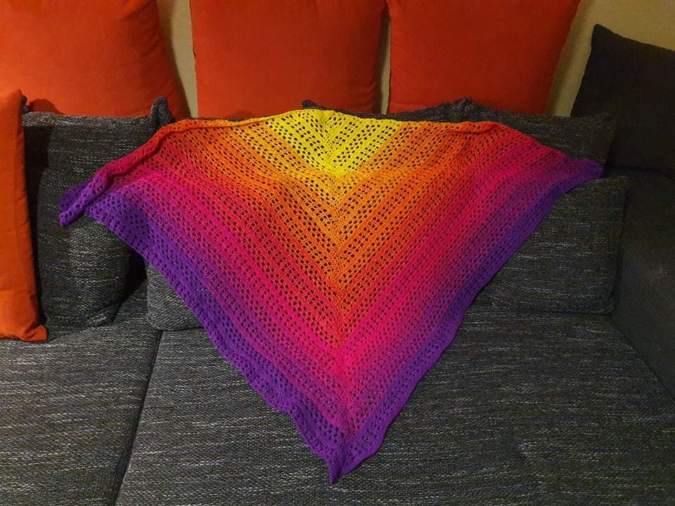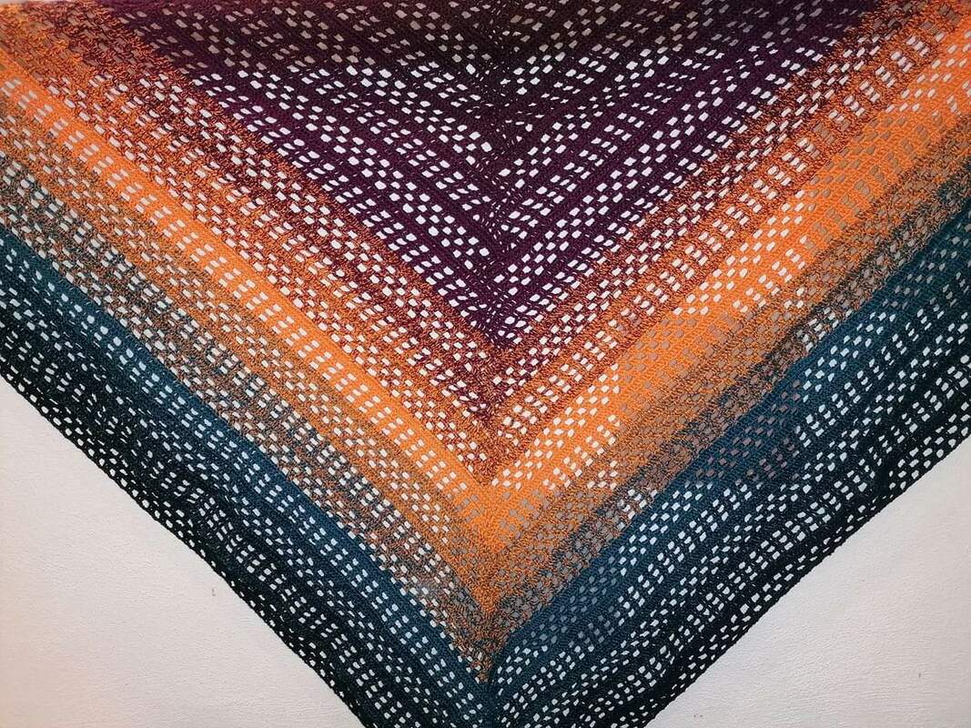 Ihr solltet ein Farbverlaufsgarn mit einer Lauflänge von mindestens 750m nutzen. Nach oben hin sind euch bei der Garnmenge natürlich keine Grenzen gesetzt.