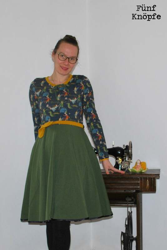 Die Ärmel werden mit einem Gummizugband abgeschlossen, der Schnitt selbst beinhaltet sowohl am Oberteil als auch am Rockteil je 2 verschiedene Längen (für Damen unter 1,70m Körpergröße und solche, die die 1,70m überschreiten), sodass du dir dein Kleid nicht nur passend zu deiner Konfektionsgröße sondern auch zu deiner Körpergröße nähen kannst. So ersparst du dir Kürzen oder Verlängern.