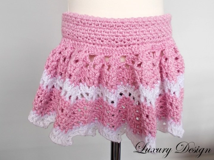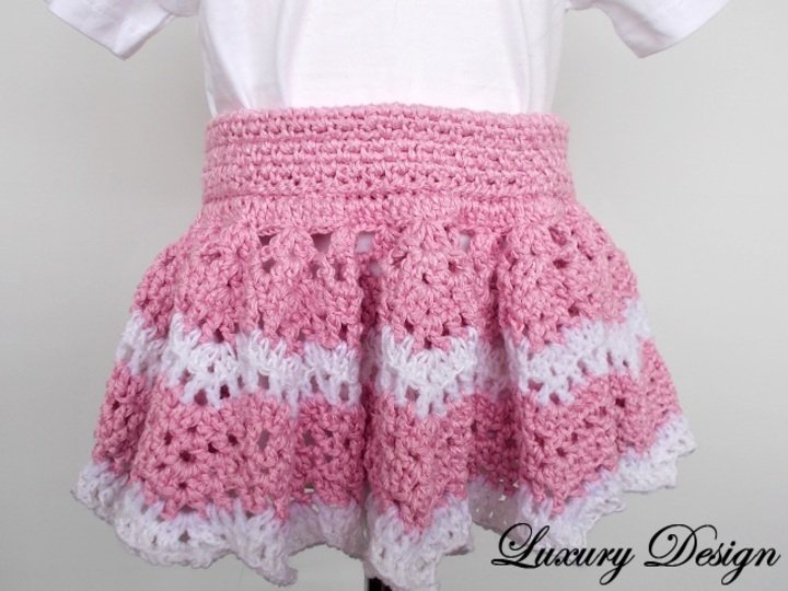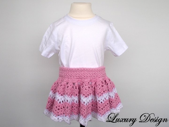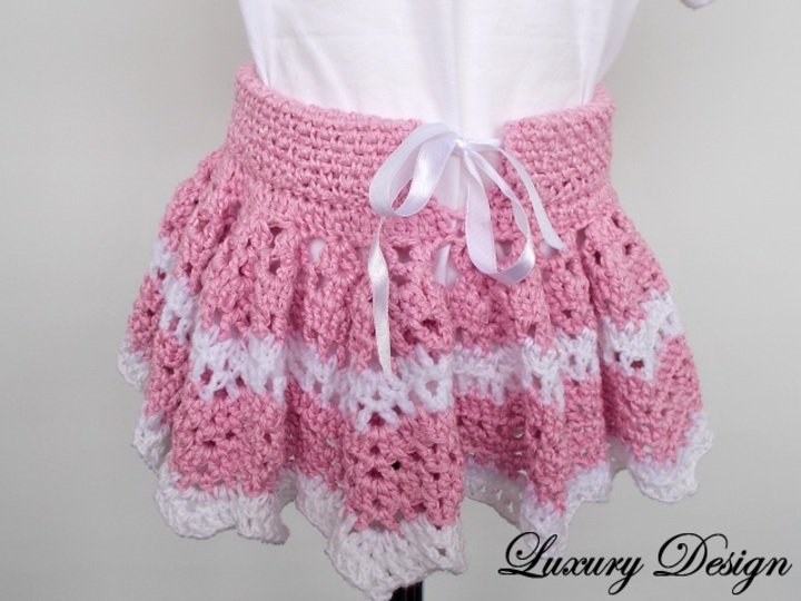 Ein hübscher Ballerinarock in 2 typischen Mädchenfarben gehäkelt,sieht aber in anderen Farbkombinationen genauso süß aus.Ideal für einen schönen Sommertag oder auch zur Hochzeit.Das Rockbündchen können Sie mit einem Band variieren, so dass der Rock einige Zeit mitwachsen kann.