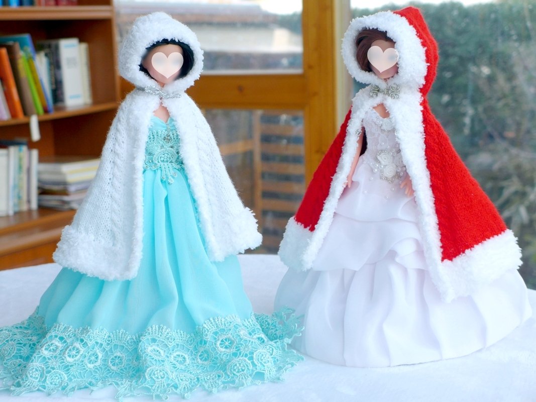 Was brauchen die hübschen kleinen Puppen mit den schönen Prinzessinnenkleidern, wenn sie im Winter aufs Schloß zu einem großen Ball eingeladen werden? Richtig ... ein Winter-Cape.