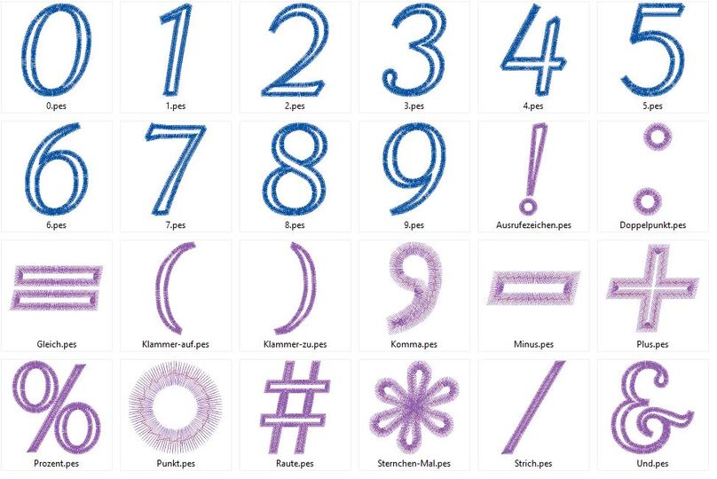 ♥ Zahlen und Zeichen in 8cm als Stickdatei ♥
