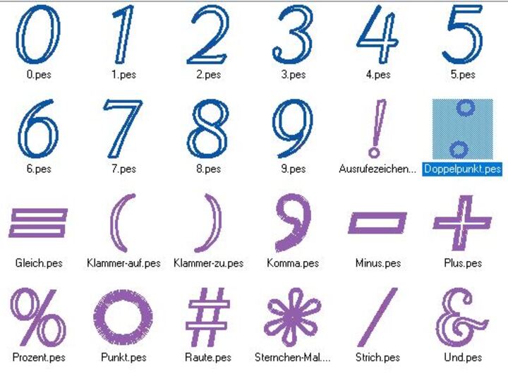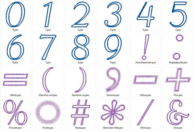 ♥ Zahlen und Zeichen in 13cm als Stickdatei ♥