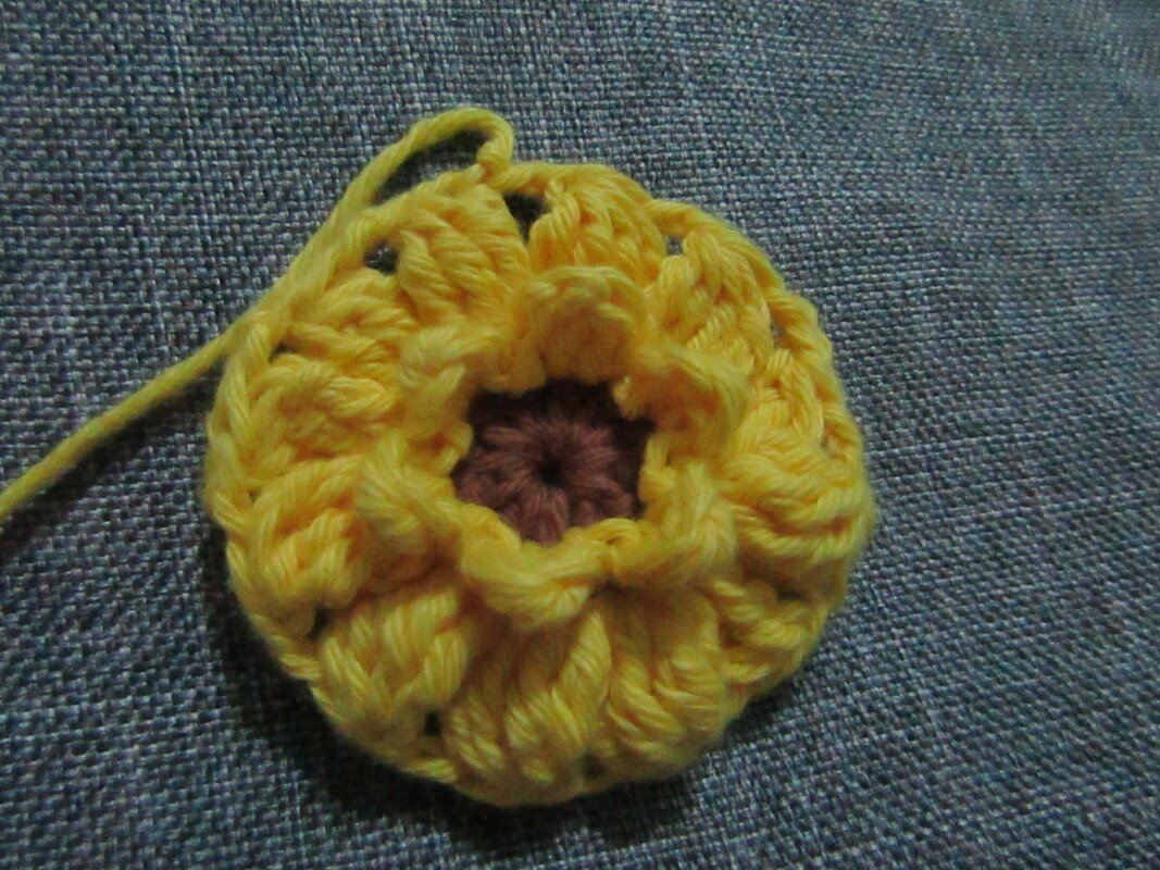 Das fertige Granny Square hat bei mir eine Seitenlänge von 7 cm. Je nachdem wie fest Du häkelst, können sich kleine Abeichungen von diesem Maß ergeben.