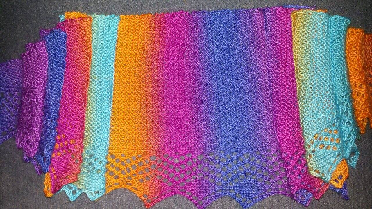 ein quergestricktes Tuch bei dem die Borte als einfaches Lacemuster gleich mitgestrickt wird .