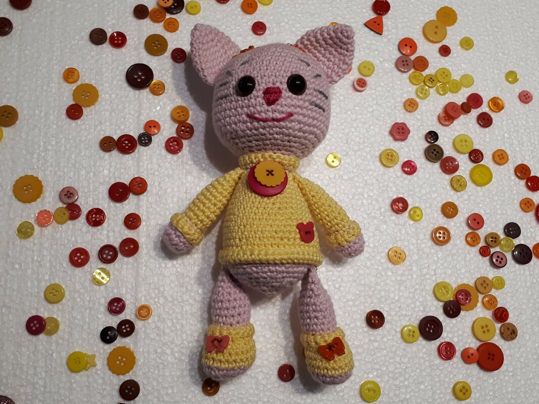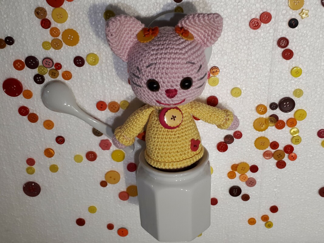 Holen Sie sich diese super niedliche Anleitung für das süße Kitten "Knöpfchen" und lassen Sie Ihrer Kreativität freien Lauf.