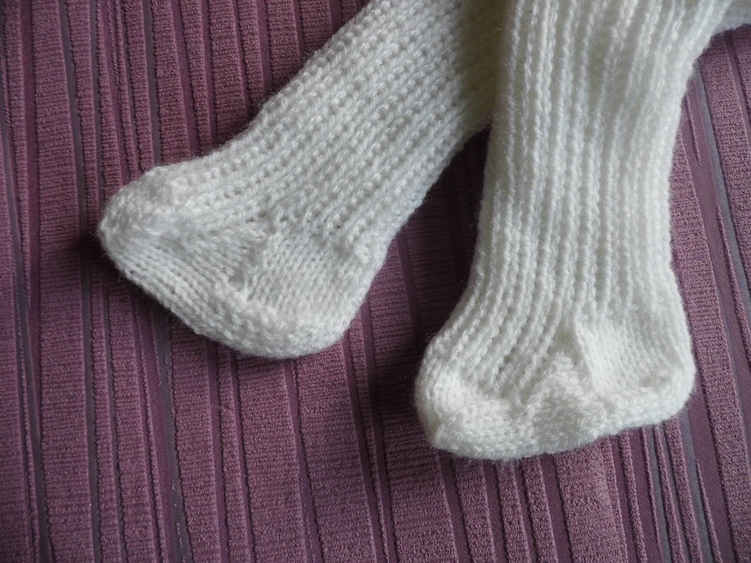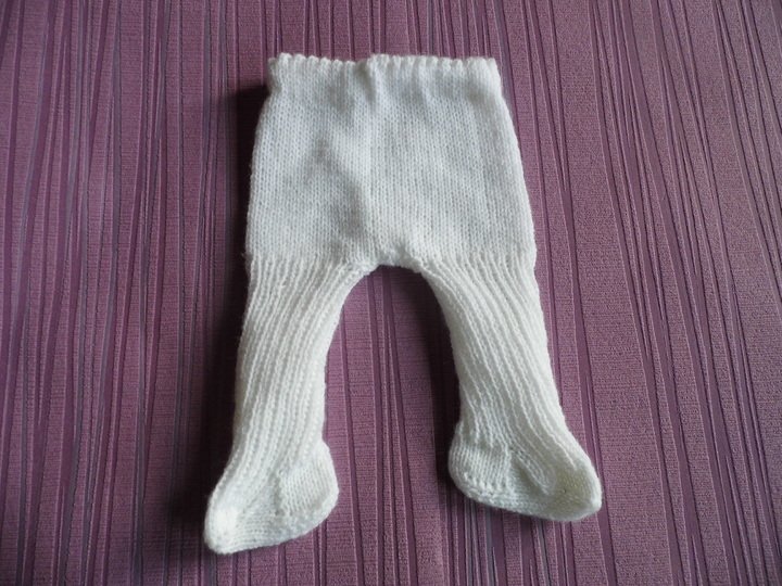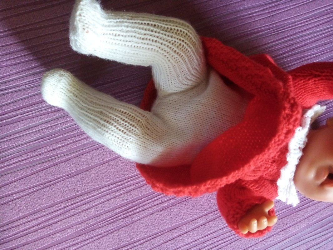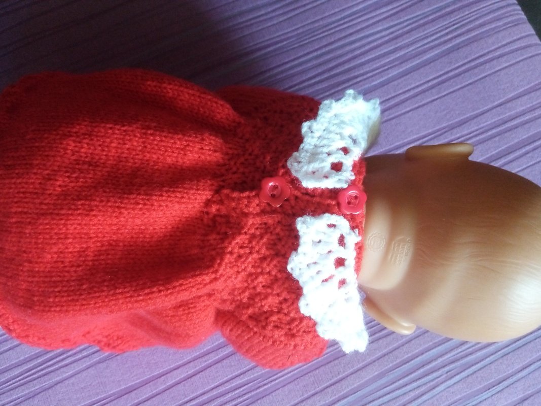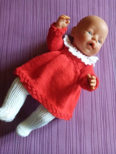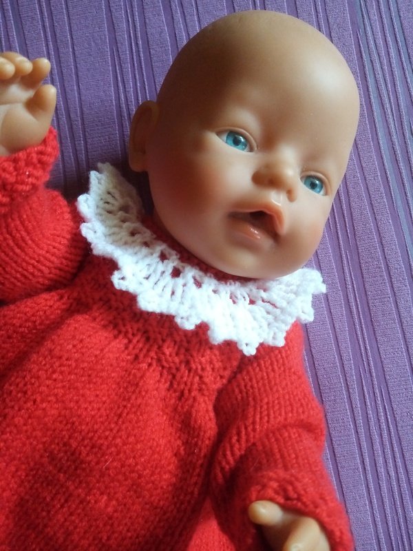 Eine Anleitung für ein Puppenkleid mit einem Häkelkragen und eine Strumpfhose für Babypuppen Gr. 42/45