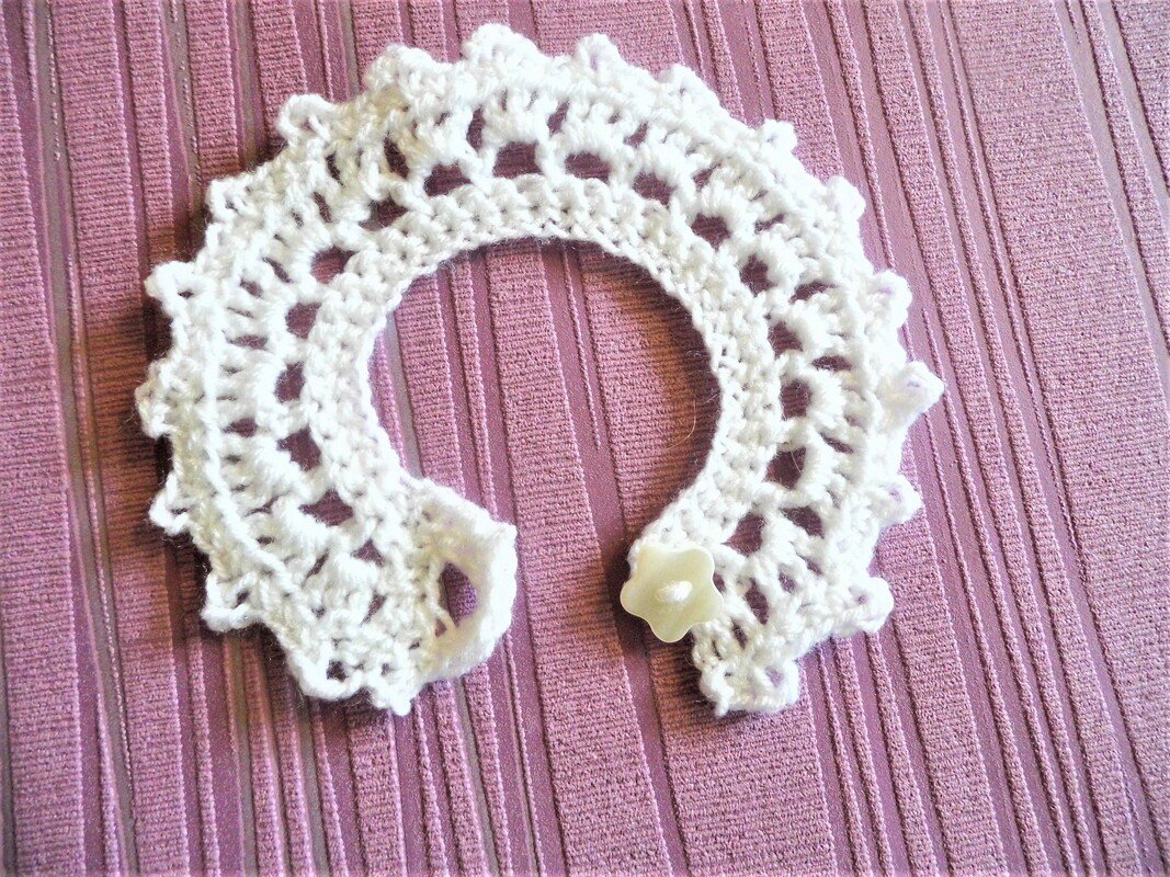 Häkelanleitung für einen einfachen Kragen zum Aufpeppen des Kleidungsstückes. Der Kragen kann zum Abnehmen mit Knopfverschluß oder direkt an das Kleidungsstück gearbeitet werden. Vorzugsweise aus dünnem Garn, aber auch in dickerem Garn möglich.