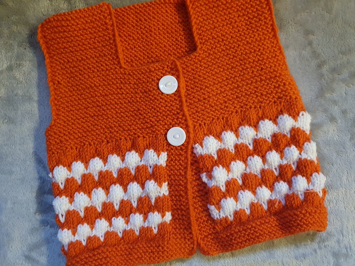 Diese Babyweste wird nur in rechten und linken Maschen gestrickt.