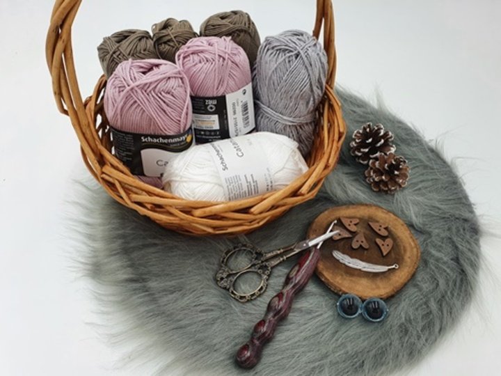 Grundkenntnisse in festen Maschen, halben Stäbchen, Stäbchen, Reliefstäbchen, Magic Ring, Zu- und Abnahme sollten vorhanden sein.