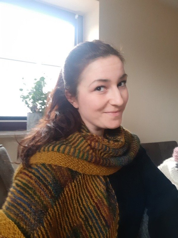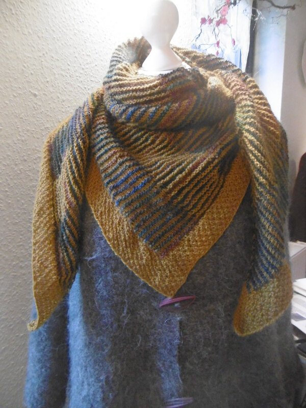 Das Tuch mißt ungespannt 175 x 75 cm. Durch das Spannen wird es noch größer, Es eignet sich sowohl als Halstuch, als auch als Schulterwärmer .