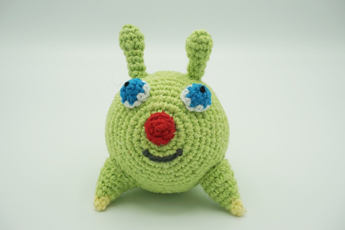 Du kannst die Größe durch die Stärke des Baumwollgarns um einige Zentimeter beeinflussen. Beachte aber bitte, dass die Struktur bei dickerem Baumwollgarn an Feinheit verliert. Ebenso kannst Du auch die Figur bzw. das Kuscheltier kleiner durch dünneres Baumwollgarn häkeln. Kleiner bedeutet aber leider auch anstrengender für Augen und Finger. Insgesamt ist das jedoch eine einfache Methode ein 10 cm Kuscheltier in der Größe anzupassen.