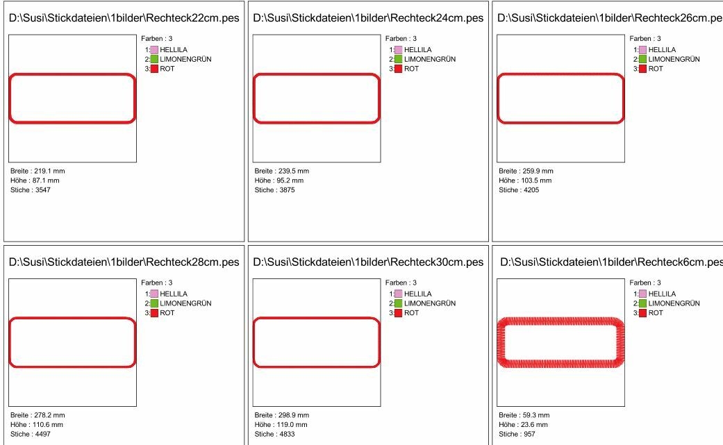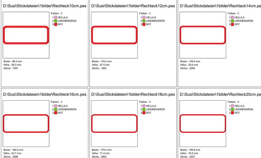Rechteck Rahmen in 13 Größen für Stoffapplis