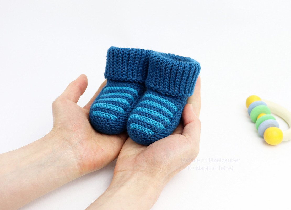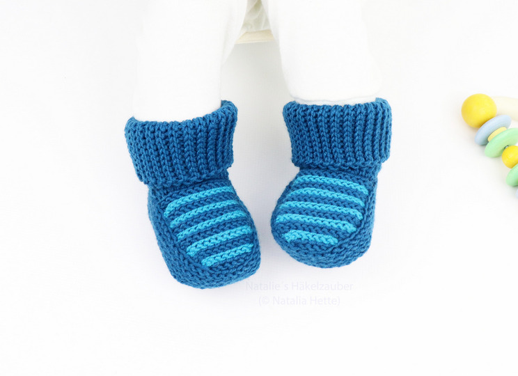 Weiche Baby- & Kinderschuhe (Socken) im Stricklook schnell und unkompliziert für Dein Kind oder Enkelkind zu häkeln, ist mit dieser Anleitung überhaupt kein Problem! Ein Muster im Stricklook, leicht anpassbare Größe machen diese Babyschuhe zu einem echten Hingucker!