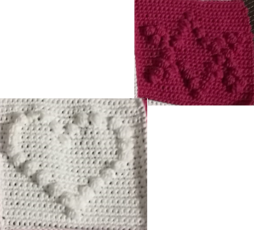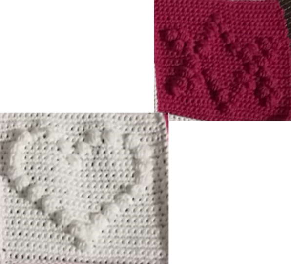 Eine einfache Häkelanleitung für Noppenmaschen. Mit Bildern und Tabellen für ein Herz und ein Stern.