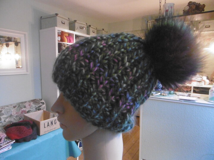 Mit Hilfe der Anleitung kann man eine einfache Damen oder Herren Mütze in Reihen stricken.Sie sieht sowohl mit Farbverlaufsgarn als auch mit einfarbigem Garn sehr schön aus. Durch Verlängern ( auch das ist erklärt) läßt sich auch eine Beanie ohne Bommel arbeiten. Das dicke Garn läßt sich schnell verarbeiten, und die Wolle hält schön warm
