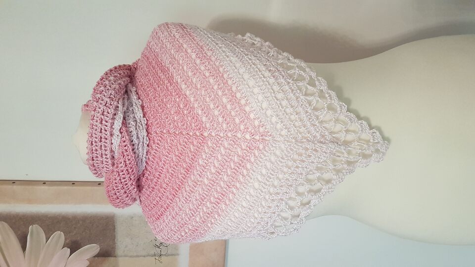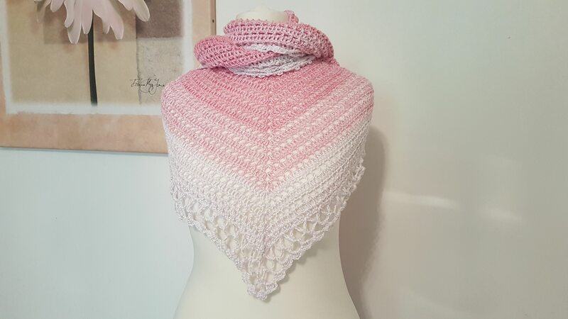 Durch seine extravagante Form sieht er aus wie ein sehr flaches Dreieckstuch - ist aber dennoch ein SChal.