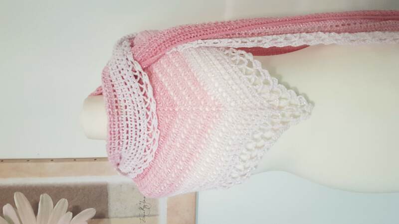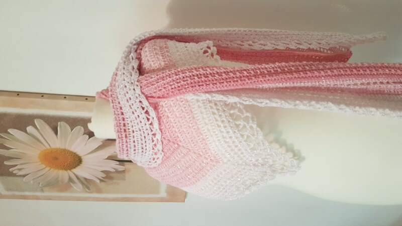 Maße etwa 180 x 40 cm - die Größe ist aber abhängig von der Nadelstärke, der Festigkeit der einzelnen Maschen und dem verwendeten Garn.