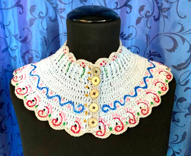 Den netten Schwedischer Kragen kannst Du aus jeder Baumwolle häkeln.