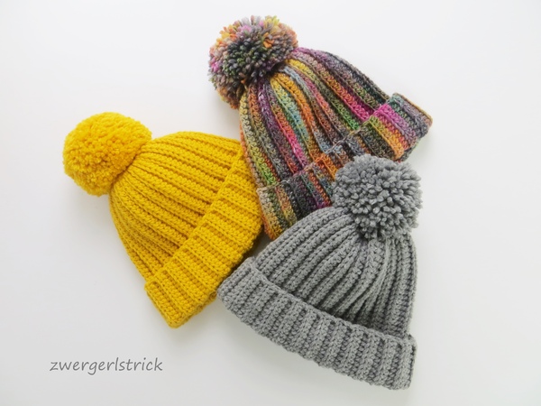 Häkelanleitung - einfache Pudelmützen für die ganze Familie